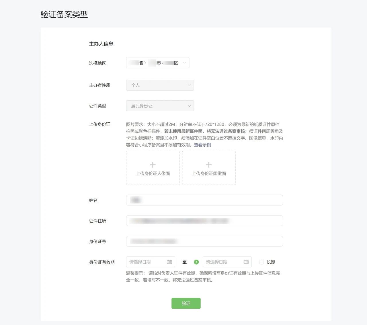 3、小程序负责人证件:管理员身份证信息、联系方式;