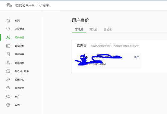3、找到小程序的“管理员”或者“开发者”(可以绑定“开发者”),两者选择其一即可
